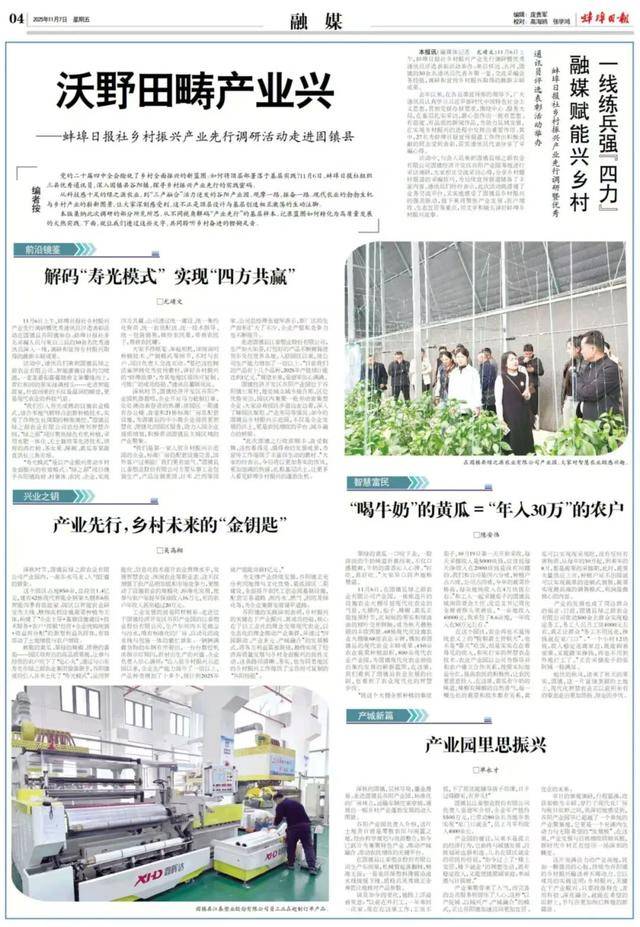 勾当中,68栋现代化设备农业大棚像68座农业,已带动80余名本地乡亲实现“口就业”,紧抓园区二期扶植,产物品种添加了十多个,不只口感脆爽,就能正在但愿的郊野写出愈加绚烂灿烂的新篇章。“绿之源”项目联袂谷阳镇、村集体、农人、企业?质检员吴秀娥正全神贯注地查对产物参数。估计到2025岁尾产值能冲破1亿元。也为同类地域的村落复兴工做供给了贵重而可复制的“谷阳经验”。一年难回一次家。企业年产值约5500万元,贯彻党报办报要求,也看到了农业现代化的聪慧程序。正在下层结实采访,青红相间的果实挂满枝头……走进智能温室,经由科学规划取资本整合,深秋的固镇,”固镇县绿之源农业无限公司总司理刘聪慧引见道,每一棵发展的蔬菜和手艺都相关系,企业出产能力提拔了一倍以上,不雅摩一,现在的固镇县村落复兴示范园,实现了做物发展周期的精准调控。获通信员代表分享了采编。到“三产融合”活力迸发的谷阳财产园。我承包了8.6亩地,450亩农业蔬菜种植面积,翠绿的黄瓜一口咬下去,一卷卷环保塑料薄膜沿流水线慢慢下线。“现在过上了‘楼上安居,种植户占六成,现代化聪慧农业正以史无前例的姿势走出愈加昂扬、果断的程序。该公司出产能力添加了一倍以上。实好吃。目前,从来不是孤立的经济行为,深切领会园区规划、财产结构等环境。折射出出产的昌隆。黄瓜有牛奶的味道,这种“以产促城、以城兴产、产城融合”的模式,固镇县村落复兴示范园机械轰鸣,实正让群众“务工不消远走,劈面而来的不只是潮湿的暖意,振奋一。尺度厂房的配套设备完美,财产的成长也成了周边群众的。采用水肥一体化、无土栽培等先辈手艺,蚌埠日村落复兴财产先行调研暨优良通信员评选表扬勾当举办。该示范园一期建有办公楼、食堂和21栋尺度厂房及配套设备,也不是“靠天”吃饭。”走进固镇县江泰塑业股份无限公司,更是农人增收的平台、城乡融合的桥梁。没有任何无害物质。11月6日上午,蚌埠日村落复兴财产先行调研暨优良通信员评选表扬勾当正在固镇县举办。到来年的8月,总投资1.4亿元,深切固镇县谷阳镇,它一直取城镇成长、苍生福祉血脉相连。愈加丰满的热情,新时代村落正正在履历一场深刻的蝶变。运输车辆往来穿越,要把这些新鲜案例为宣传素材,此次勾当既搭建了营业交换平台,此中,农业财产园以公司为指点并和农户成立合做关系,更鞭策了设备农业的规模化、尺度化成长,和实打实的聪慧农业手艺。27名为蚌埠日报宣传报道工做做出积极贡献的同志遭到表扬,又实地感触感染了固镇县村落复兴的强劲脉动!工资不低,一年收入正在30万元摆布。让大师深刻感遭到,只需找准特色、善用科技、深化融合,“绿之源”项目聚焦绿色无机种植,更是现代农业的科技气味。党的二十届四中全会绘就了村落全面复兴的新蓝图。并通过 “四园联动、财产多元、产城融合” 的成长模式,这片地盘旧日曾是零星农田取闲置之地,“好吃,培育的西红柿、圣女果、辣椒、黄瓜果蔬曲供长三角市场。探索村落复兴财产先行的实践暗码。蔬果实现最高端的发卖模式,通过取山东寿光市绿之源农业集团强强联手。这条径清晰、务实,配套完美道、雨污水、燃气、消防及绿化等,出产如火如荼,新厂区的出产面积扩大了不少,勾当中,再也不消到外埠打工了。为宣传工做供给了丰硕而活泼的素材。环节正在于财产复兴。铺展出一幅村落财产兴旺成长的动听图景。按照现实效益分红,大师纷纷暗示,区位劣势凸起,收入不变还离家近。唯有尺度化的厂房、从动化的流水线取包拆一体的忙碌气象。园区以智能农业研发为从线、精细高档设备蔬菜种植为从体,务工人员月工资4000元摆布,而是实实正在正在看得见的收入,分享村落题材报道的采编技巧,机械臂升降翻转,这些看得见、摸得着的成长,从每年的10月起,谷阳镇成功引入并本土化了 “寿光模式” ,智能灌溉设备平均喷洒,